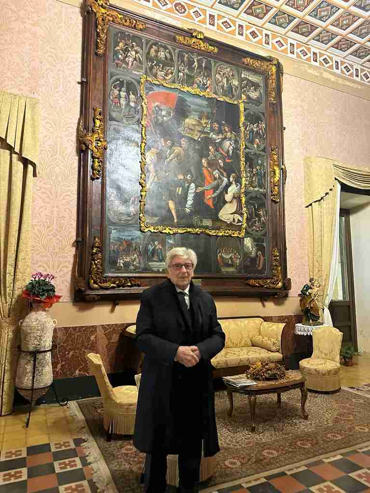 Quindi, rivolgendosi a Mons. Giurdanella, Bordonali ha detto: «Oggi, a questo manipolo di Cavalieri si è aggiunto un personaggio di peso. Eccellenza, siamo onorati di consegnarLe il diploma di nomina a Cappellano di Gran Croce Jure Sanguinis del 22 novembre 2023, che il Gran Maestro, S.A.R. il Principe Don Pedro di Borbone delle Due Sicilie e Orléans, Duca di Calabria, Conte di Caserta, Capo della Real Casa delle Due Sicilie, ci ha fatto pervenire su richiesta del Presidente della Real Commissione per l’Italia, S.E. Don Flavio Borghese, dei Principi di Sulmona e Montecompatri».