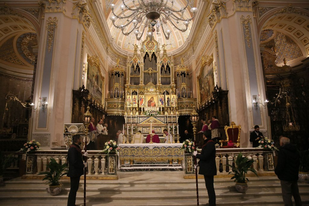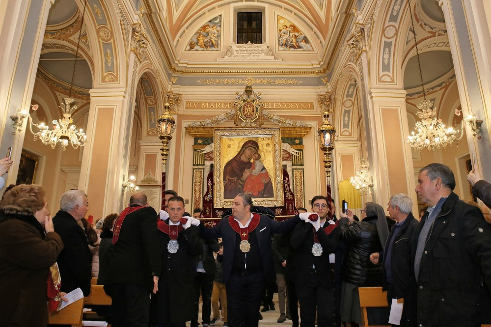 Domenica 12 gennaio 2020, alle ore 12.00 era stata celebrata nella chiesa del Santissimo Rosario, che per 14 mesi l’ha ospitato, l’ultima Santa Messa per la Comunità parrocchiale di Santissima Maria dell’Elemosina. In mattinata, al Rosario, è stata benedetta una lapide in ricordo dei tempi di permanenza in quella chiesetta, sussidiaria della Basilica-Chiesa madre. L’icona prodigiosa della Madonna dell’Elemosina, che aveva vegliato con la Comunità, ha lasciata la chiesa del Rosario e ha fatto rientro nella Sua Chiesa Titolare.