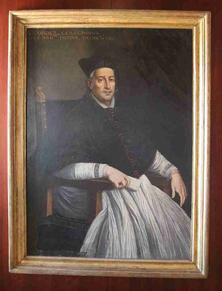 Nunzio Apostolico presso le grandi Corti d’Europa – dalla Russia all’Inghilterra – predicatore della Crociata contro i Turchi al Congresso di Salamanca e primo vescovo residente di Santo Domingo, Mons. Alessandro Geraldini è il rampollo di una nobile e antichissima famiglia toscana imparentata nei secoli – tra gli altri – con Monna Lisa Gherardini (passata alla storia come la “Gioconda” di Leonardo) e John Fitzgerald Kennedy, 35° Presidente degli Stati Uniti d’America.