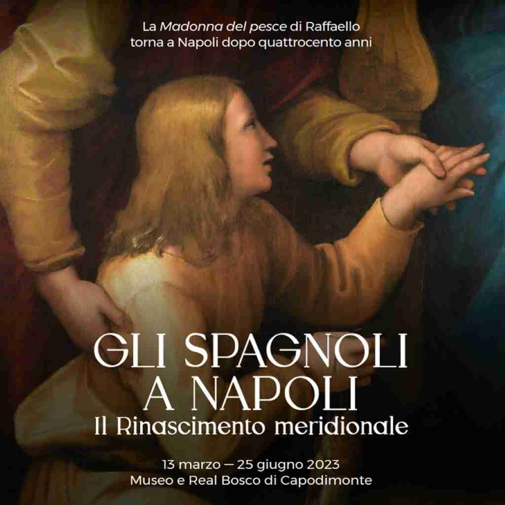 Per felice coincidenza temporale, LL.AA.RR. hanno avuto l’occasione di visitare la mostra pittorica Gli Spagnoli a Napoli. Il rinascimento Meridionale, curata dal Prof. Riccardo Naldi, docente di Storia dell’arte moderna all’Università “L’Orientale” di Napoli e dal Prof. Andrea Zezza, docente di Storia dell’arte moderna all’Università della Campania “Luigi Vanvitelli”. Il progetto espositivo è stato realizzato in partenariato con il Museo Nacional del Prado, dove una prima versione della mostra è stata inaugurata, ottenendo un notevole successo di critica e di pubblico, il 18 ottobre 2022 con il titolo Otro Renacimiento. Artistas españoles en Nápoles al comienzos del Cinquecento. Grazie a questa importante collaborazione, è tornata a Napoli per la prima volta dopo 400 anni la Madonna del pesce eseguita da Raffaello. Il dipinto, destinato alla cappella della famiglia del Doce in San Domenico Maggiore a Napoli, divenne un punto di riferimento fondamentale per gli artisti attivi a Napoli durante il Cinquecento. Fu asportata dai governanti spagnoli e trasferita a Madrid intorno alla metà del Seicento.