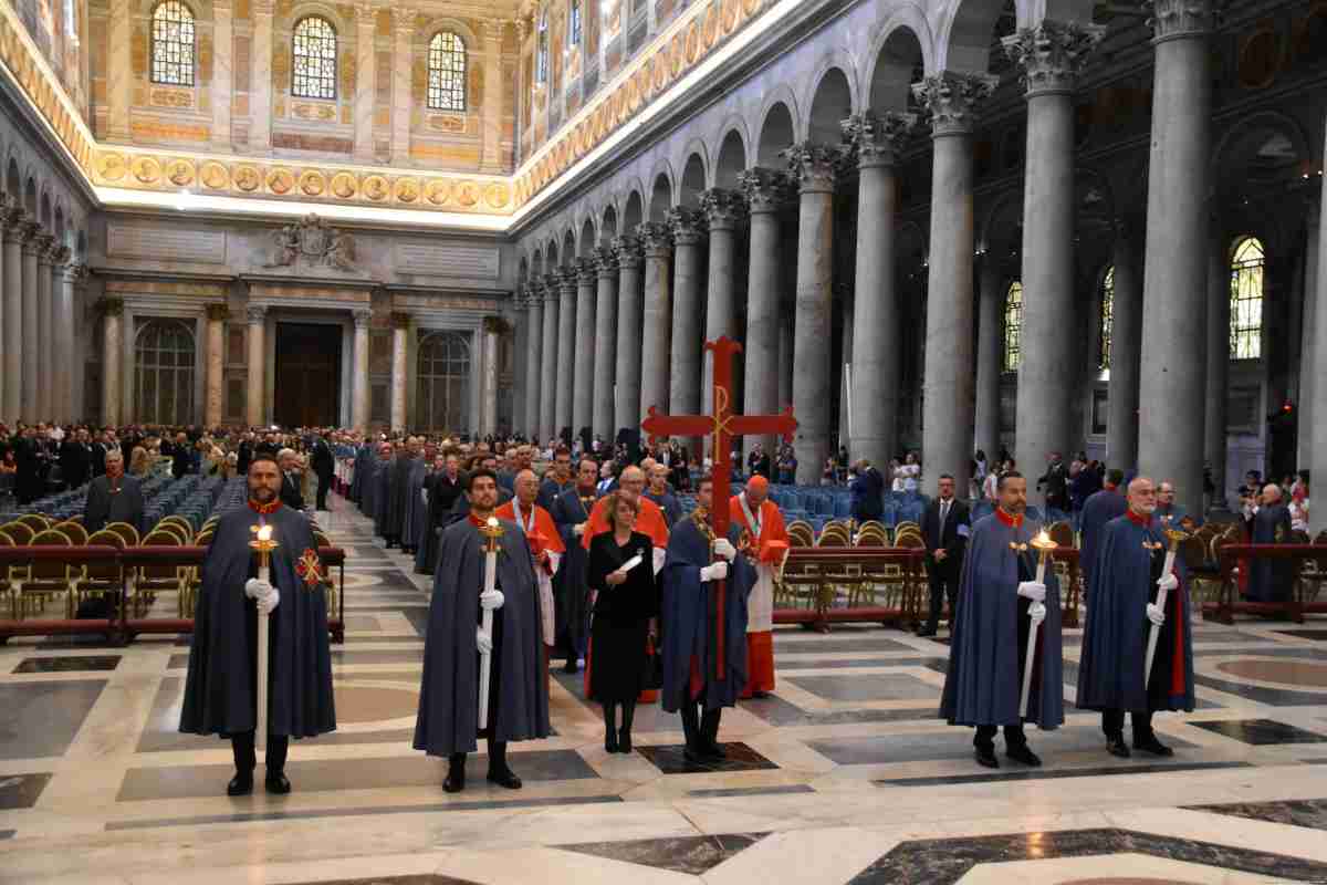 Per la Chiesa tutta e, in particolar modo, per il Santo Padre Leone, per l’Eminentissimo Cardinale celebrante, per il nostro Gran Priore, per il Priore per l’Italia, per i vescovi, per i nostri cappellani e per tutti i ministri di Dio: perché la luce e la forza vittoriosa della Croce di Cristo dissipi in loro ogni umano timore e li renda autentici testimoni della Verità: