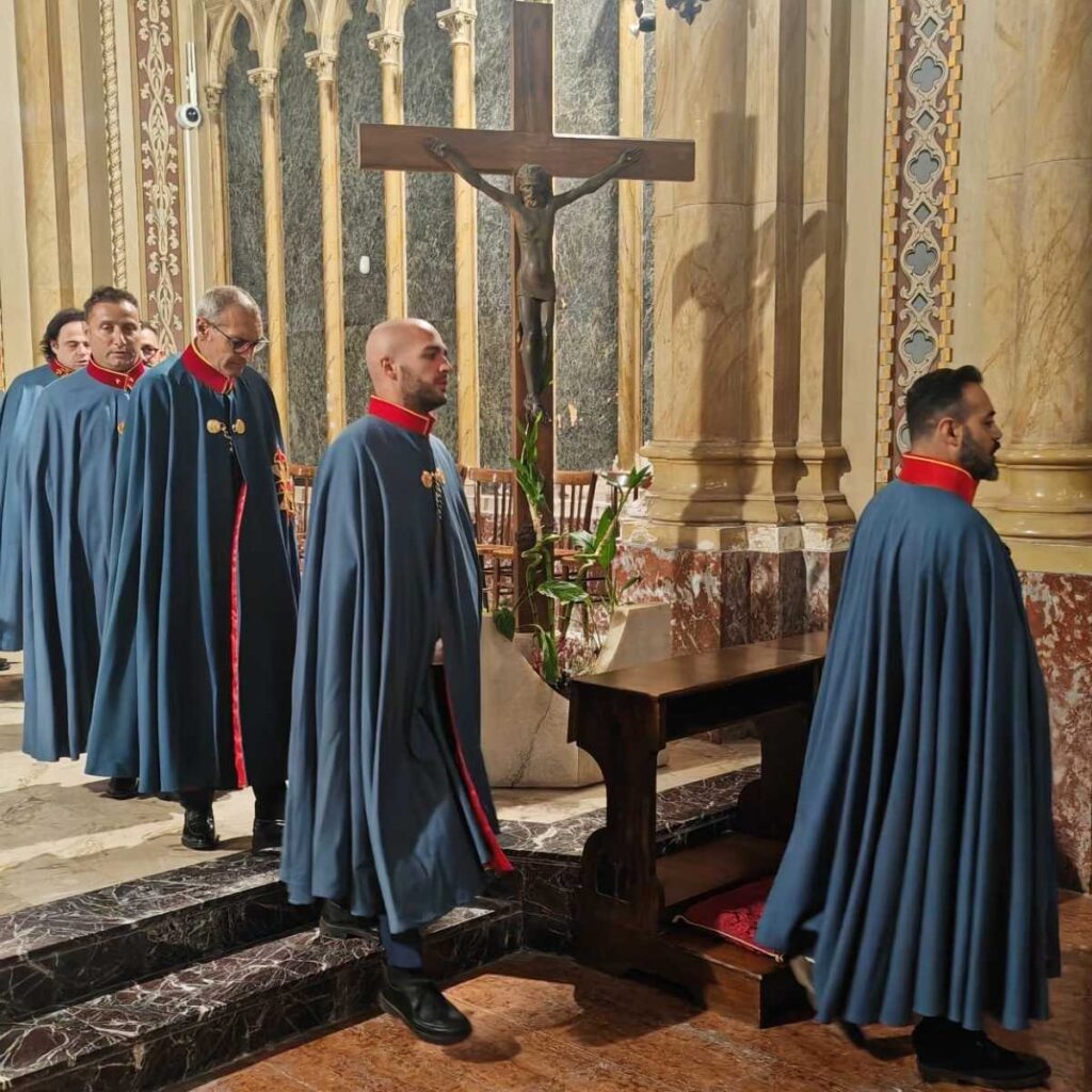 La celebrazione della Santa Messa del venerdì della XXXII Settimana del Tempo Ordinario è stata presieduta alle ore 19.00 da Don Giovanni Gattuso, concelebrante Don Giovanni Zappalà, Cappellani di Merito, alla presenza del Vice Delegato per la Calabria, Nob. Dott. Candido Francica di Panaya, Cavaliere di Giustizia; dell’Addetto alle Relazioni Esterne della Delegazione, Avv. Francesco Biasi, Cavaliere de Jure Sanguinis; e del Referente per Reggio Calabria, Avv. Massimo Seminara, Cavaliere di Merito con Placca Argento, che ha organizzato l’incontro con Mario Latella, Cavaliere di Merito.
