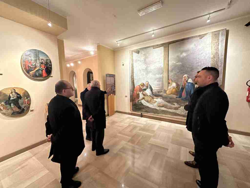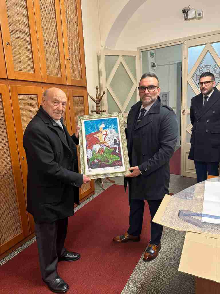 In tarda mattinata, il Marchese Sanfelice ha visitato in forma privata il Museo Diocesano di Arte Sacra di Lamezia Terme. È stato accolto dal Direttore Dott. Paolo Francesco, che con grande competenza lo ha introdotto in un emozionante viaggio storico culturale e religioso, partendo dal racconto dell’opera Ecce Homo. Questa scultura ideata, realizzata e donata nel 2017 dal Maestro Raffaele Mazza, rappresenta la prima apertura in assoluto delle porte del museo diocesano all’arte contemporanea. Durante la visita, il Marchese Sanfelice ha ammirato le splendide opere d’arte ed oggetti realizzati da maestri meridionali e locali dal XV al XX secolo. Poi, in questo magnifico scenario, ha ricevuto in dono una rappresentazione con elaborazioni 3D dell’opera San Giorgio, santo patrono dell’Ordine Costantiniano, realizzata dal Maestro Mazza.