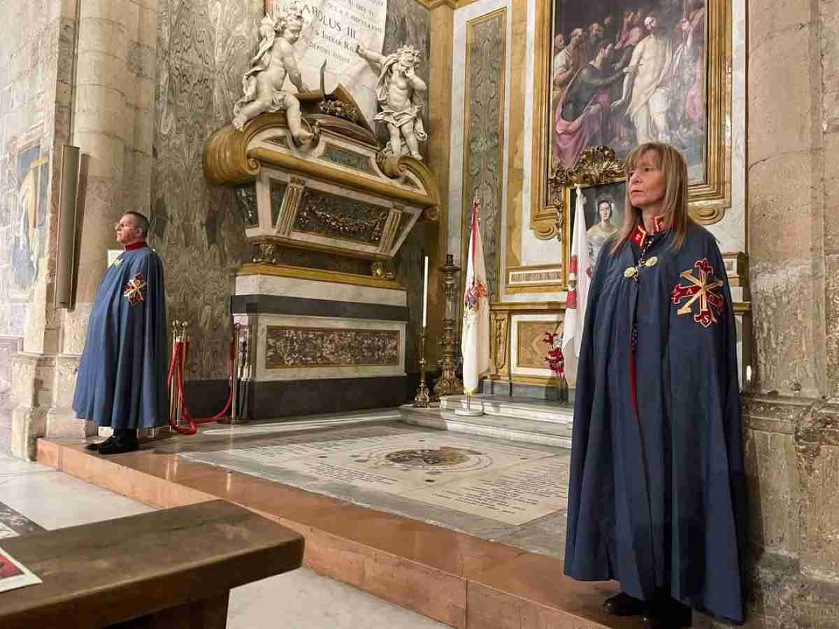 Sistemate le bandiere presso la Cappella Reale dei Borbone da parte degli Alfieri, a turno due Cavalieri Costantiniani appartenenti alla Guardia d’Onore hanno montato di picchetto a guardia delle Reali Tombe: Antonio Coiro, Cavaliere di Ufficio, e Maria Carmela Zavarese, Dama di Merito; Salvatore Samo, Cavaliere di Ufficio, e Serafina Cappiello, Dama di Merito; Giovanni Samo e Luigi Andreozzi, Cavalieri de Jure Sanguinis.