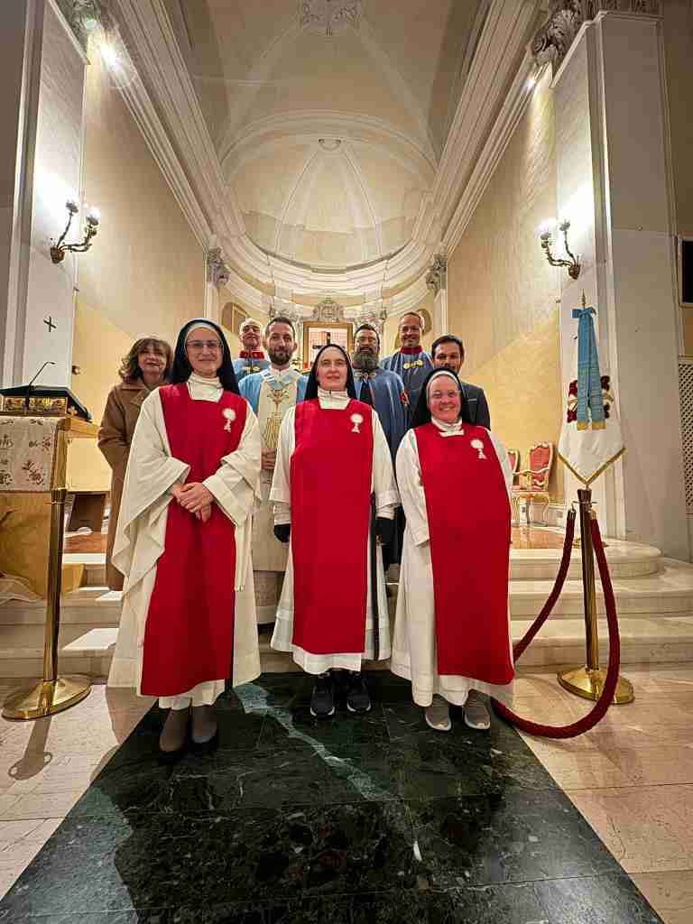 Le Monache dell’Adorazione Eucaristica hanno curato l’animazione liturgica con i canti e hanno anche letto le letture liturgiche. Al termine della Santa Messa, il Segretario di Delegazione, Luca Amadori, Cavaliere di Ufficio ha recitato la preghiera del Cavaliere Costantiniano.